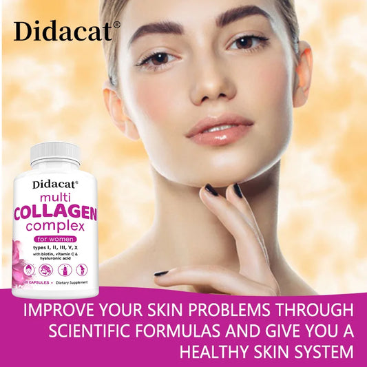 Multi-Collagen Complex - Hydrolyzed Protein Peptides with Hyaluronic Acid for Skin, Nails, Hair & Joint Health, Cellular Health